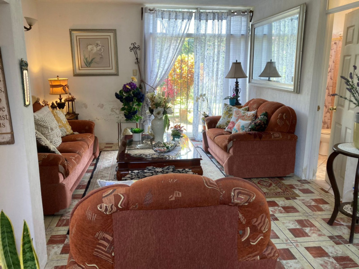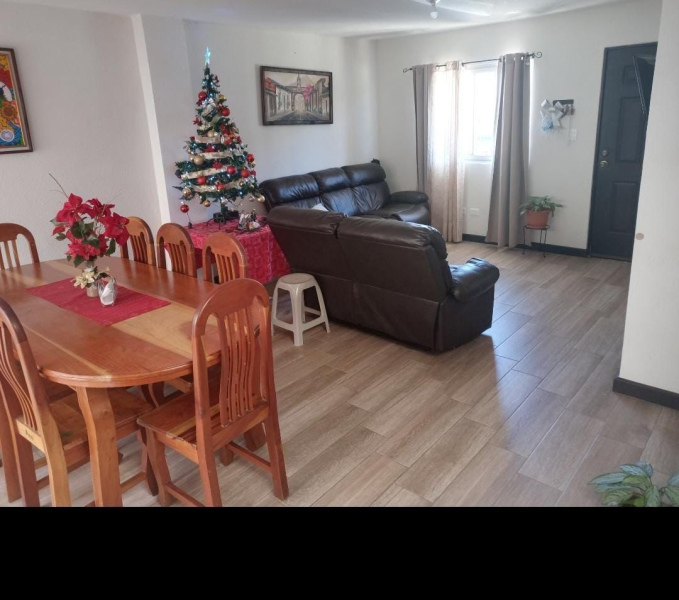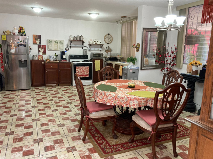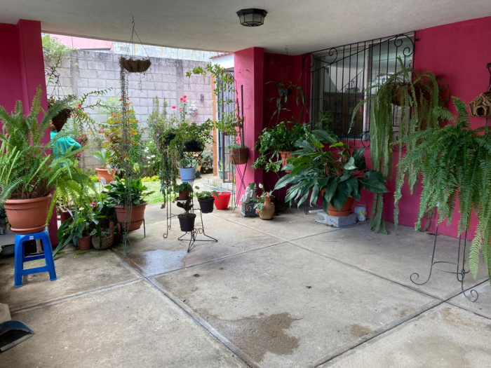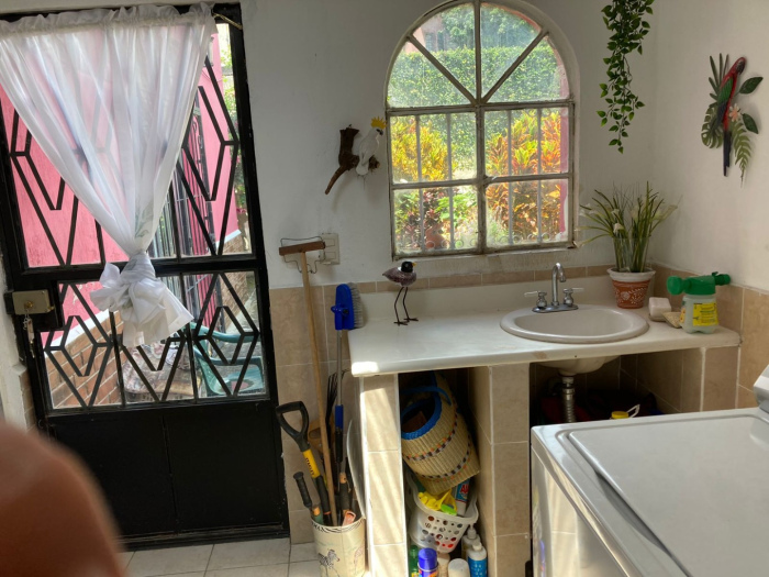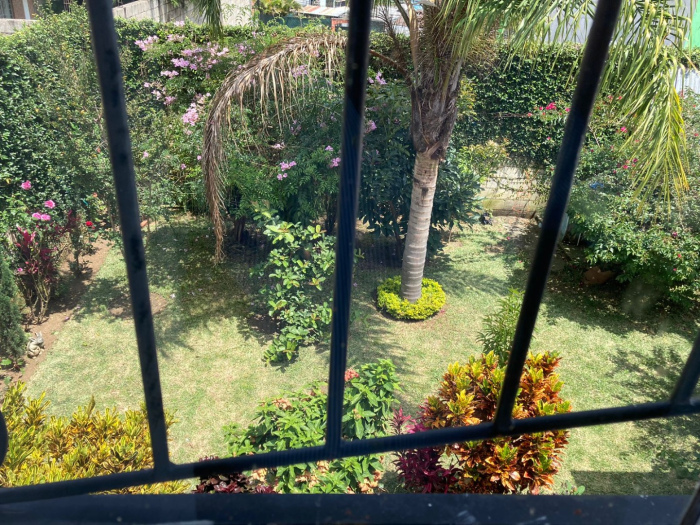 Garage para dos automóviles bajo techo, Jardin frontal, vestíbulo, sala, comedor cocina, despensa, bańo completo para visitas, cuarto de servicio, lavandería, corredor jardín izado, bello Jardin - patio trasero con árboles frutales.