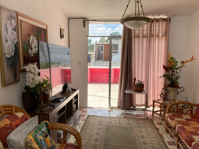SE VENDE preciosa casa de dos niveles de terraza, en Pinares de San Cristobal, Sector 2, Zona 8 de Mixco. Construida en terreno de 11x25 Mts2., con muro perimetral. Selecto vecindario.